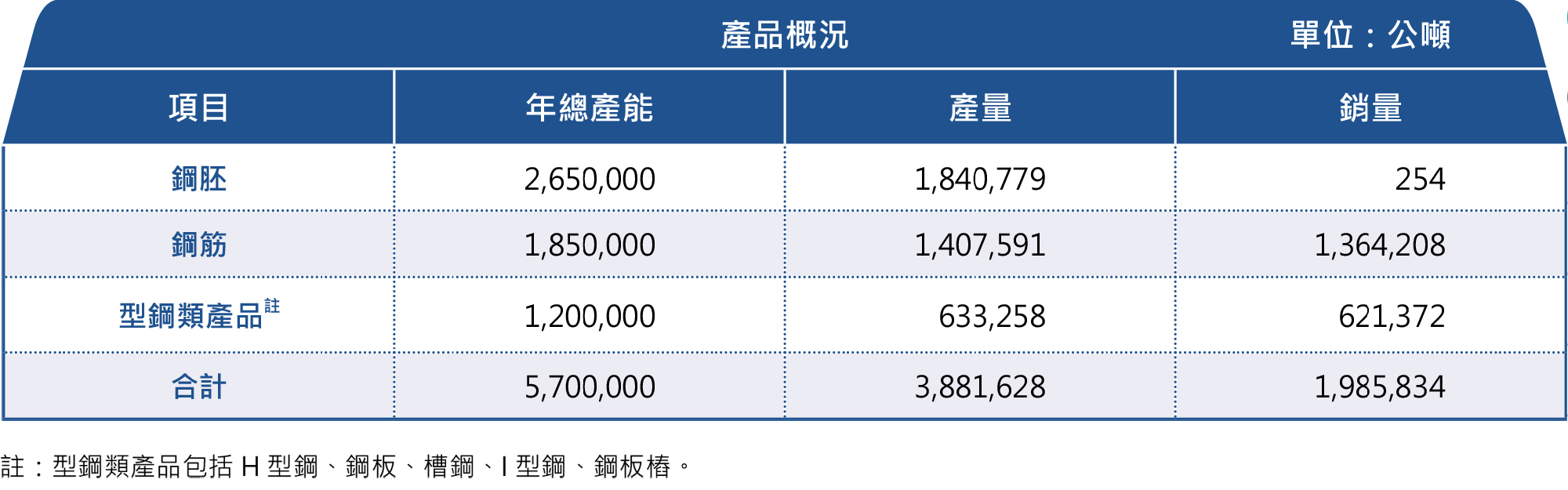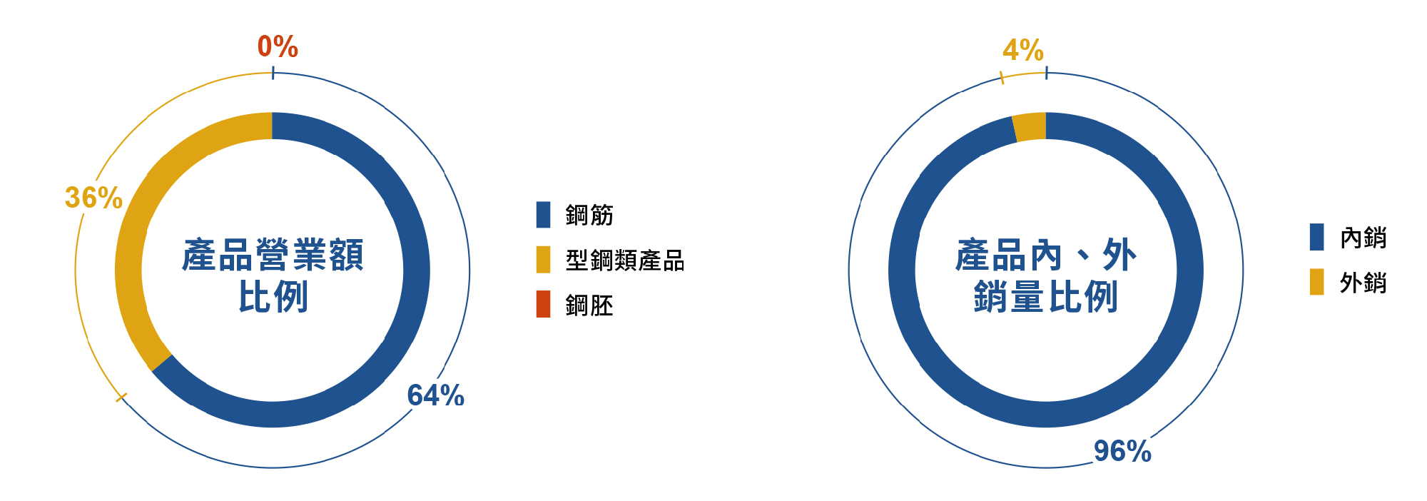 本公司主要產品為鋼筋、型鋼及鋼板,主要提供國內建築營造市場產品及服務,服務遍及營造業、建設業、鋼筋盤商(加工業)、貿易商及協力廠商(如運輸公司)。本公司2024年鋼筋以內銷為主;型鋼內銷佔88.1%、外銷11.9%,主要銷往澳洲和紐西蘭等國家;無被禁止銷售之情事發生。