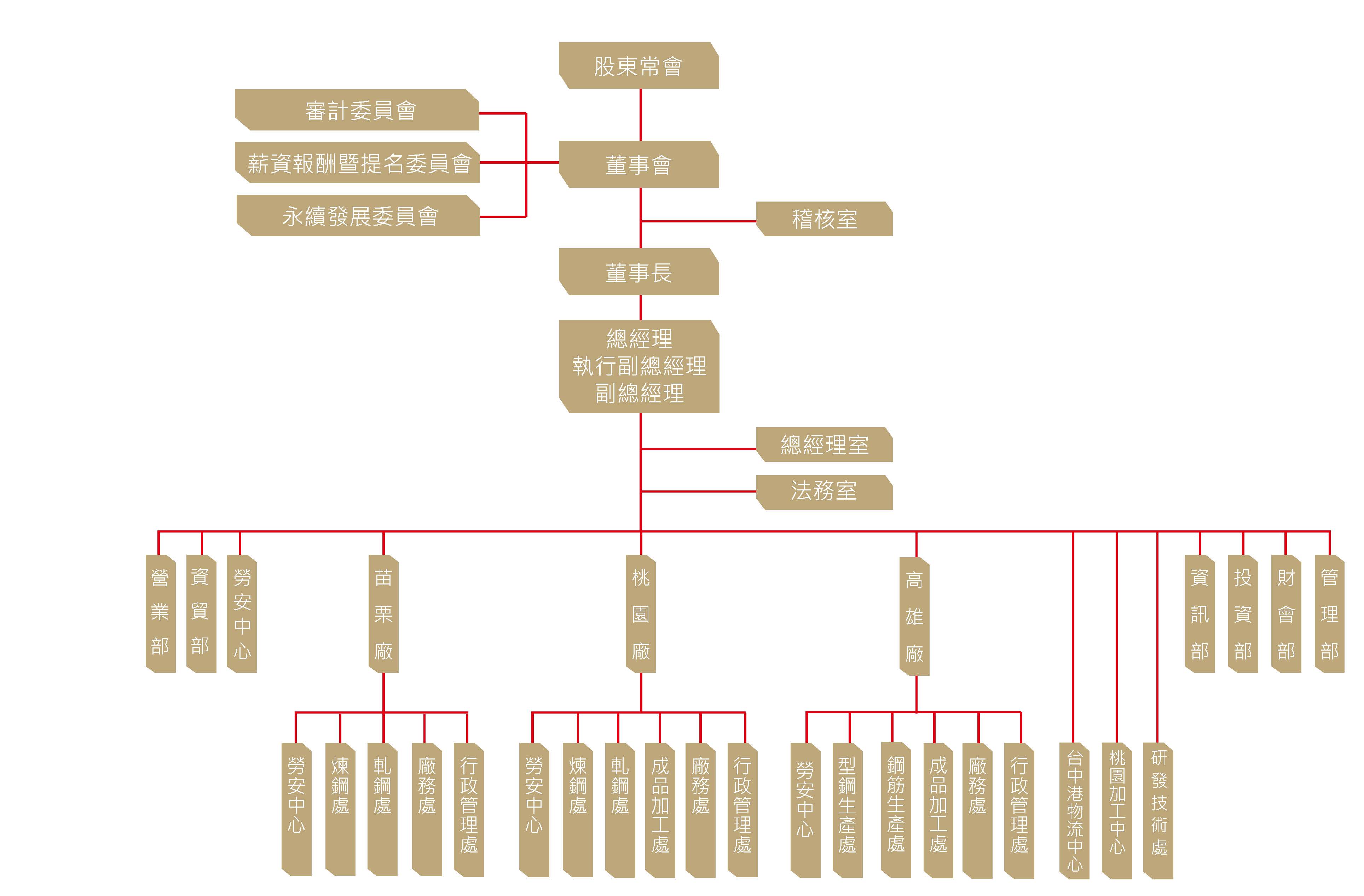 苗栗廠:掌理 H 型鋼及鋼板之生產及其他廠務有關之管理業務。